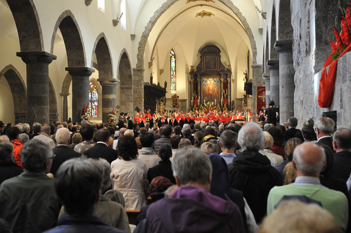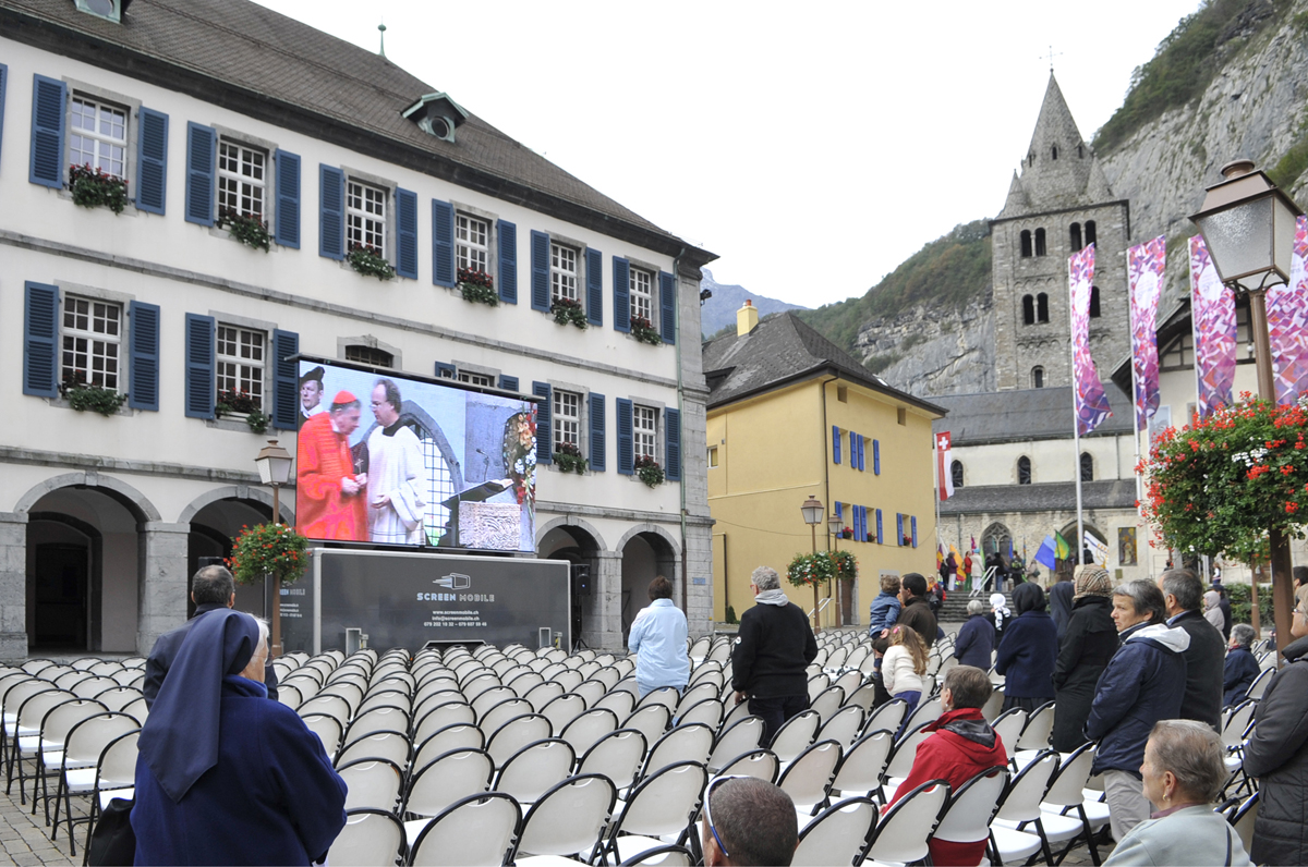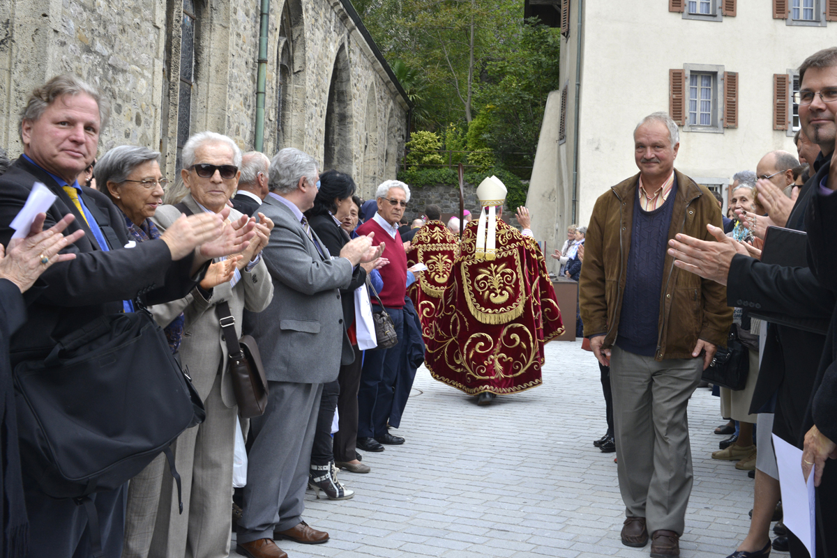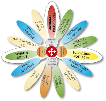 L'Abbaye vue d'avionConsciente de sa place de veilleur, humble et fragile, tant dans l’Eglise que dans le monde passionnant et difficile du 21e siècle, l’Abbaye de Saint-Maurice regarde son histoire, son présent et son avenir, comme des dons de Dieu. C’est ainsi qu’elle veut célébrer en 2015 le Jubilé des 1500 ans de sa fondation.